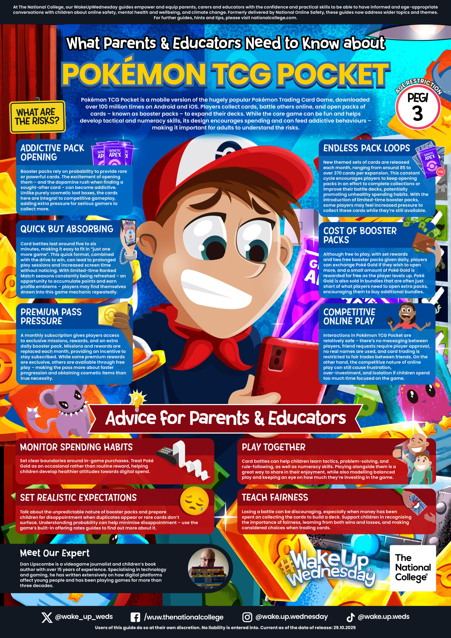 has exploded in popularity, with over 100 million downloads worldwide. The mobile trading card game is packed with quick battles, colourful decks, and the thrill of opening booster packs – but the excitement can come at a cost.This week’s #WakeUpWednesday guide helps trusted adults navigate the risks – from addictive spending habits to endless new card sets. With tips on monitoring purchases, managing play time, and encouraging fairness, our expert advice supports parents and educators in keeping young players safe while still enjoying the game.